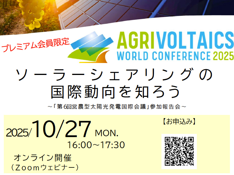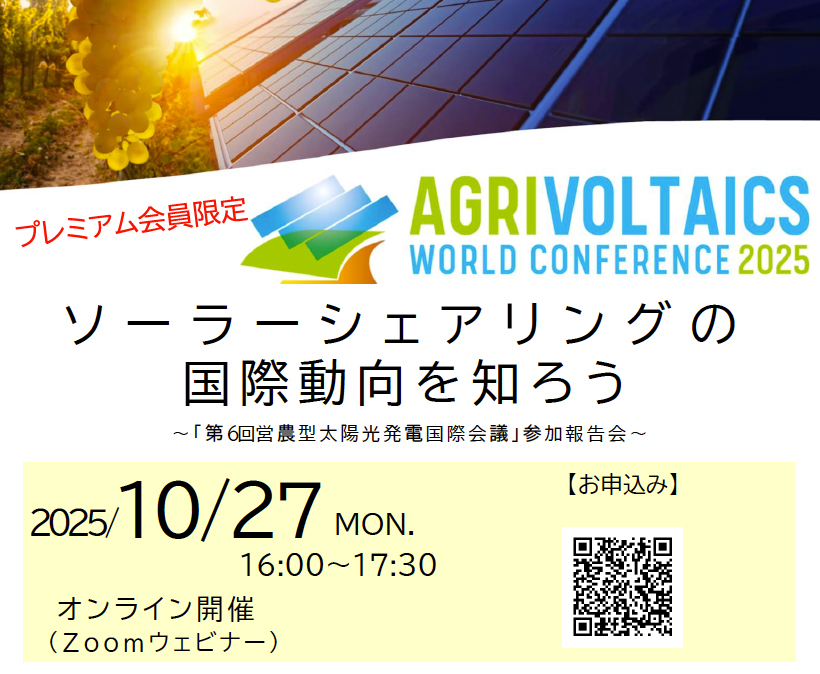 【2025.10.27(月)】「第6回営農型太陽光発電国際会議」参加報告会ウェビナー開催