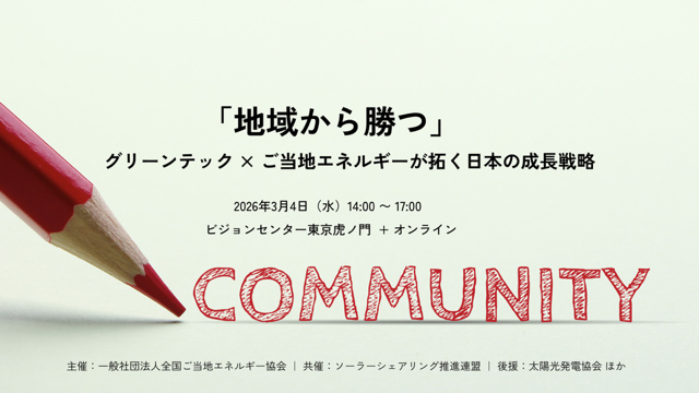 3月4日(水)14:00より、東京会場+オンラインのハイブリッド形式にて、全国ご当地エネルギー協会が主催する下記イベントが行われます。会場参加、オンライン参加とも無料です。皆様のご参加をお待ちしております。
