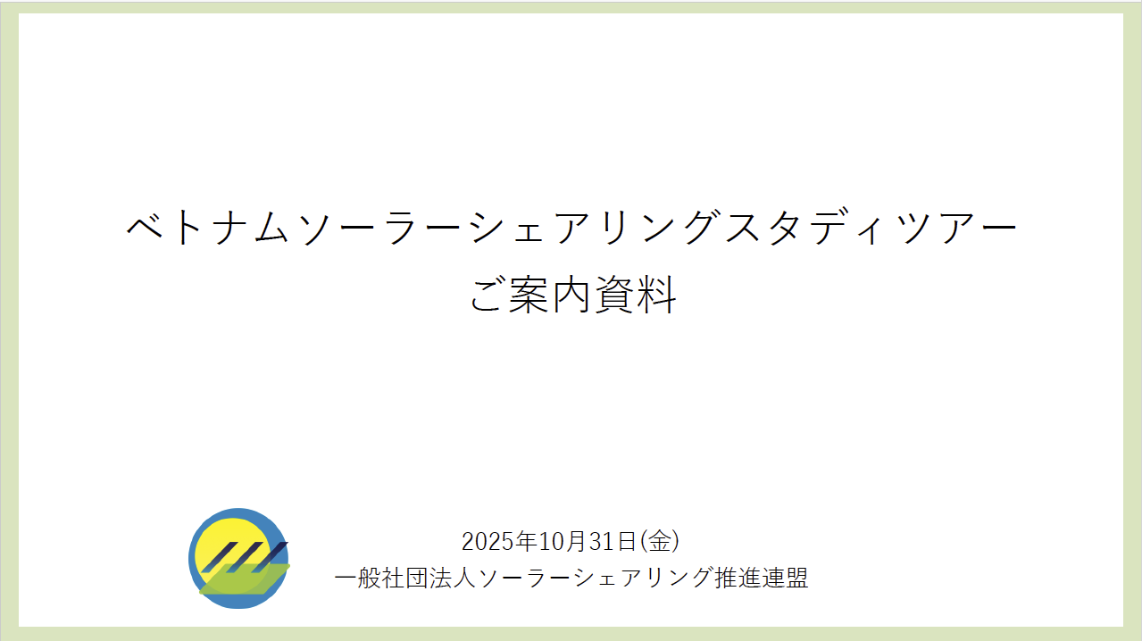 ➡️ ベトナムソーラーシェアリングスタディツアーご案内資料(PDFが開きます)